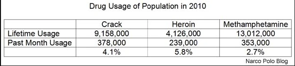 (Arthur, 2011) Rob Arthur | "The Surprisingly Low Addiction Rates of Crack, Heroin, and Meth." | Suburra.com, 2011-10-11 | Sourced from: National Survey on Drug Use and Health,” Fig. 1.1A, Substance Abuse and Mental Health Services Administration (SAMHSA), 2010. | https://suburra.com/blog/2011/10/11/low-addiction-rates/