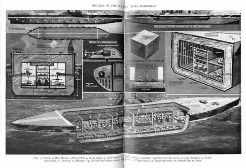Projecy Habbakuk was the brainchild of Geoffrey Pyke, an eccentric who had managed to get the ear of Lord Mountbatten and Winston Churchill. He proposed the construction of vast ships made of ice – its natural buoyancy would protect them from sinking in the event of enemy shelling, and the raw material (water) for their repair was virtually free. However, its brittleness and tendency to creep presented difficulties.