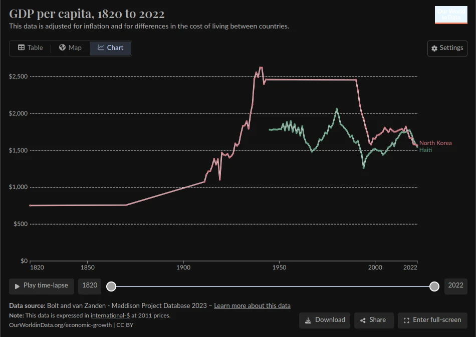 GDP/capita of North Korea and Haiti are now about the same(~1500):