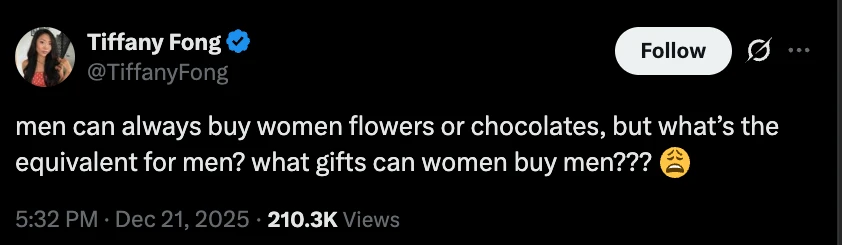 If you’re a man, what gifts would you like to receive?